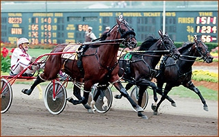 It was high drama that will never be forgotten by those who saw it. Life Sign, after being parked the entire mile over Delaware, Ohio's unforgiving half-mile track, refused to bend and kept edging forward, overtaking pacesetter Riyadh and out-gaming his nemesis Presidential Ball to capture pacing's most prestigious event in a two-heat world record. John Campbell perhaps said it best in the winner's circle after the race: "If you don't get thrilled about this, you don't get thrilled about harness racing!"